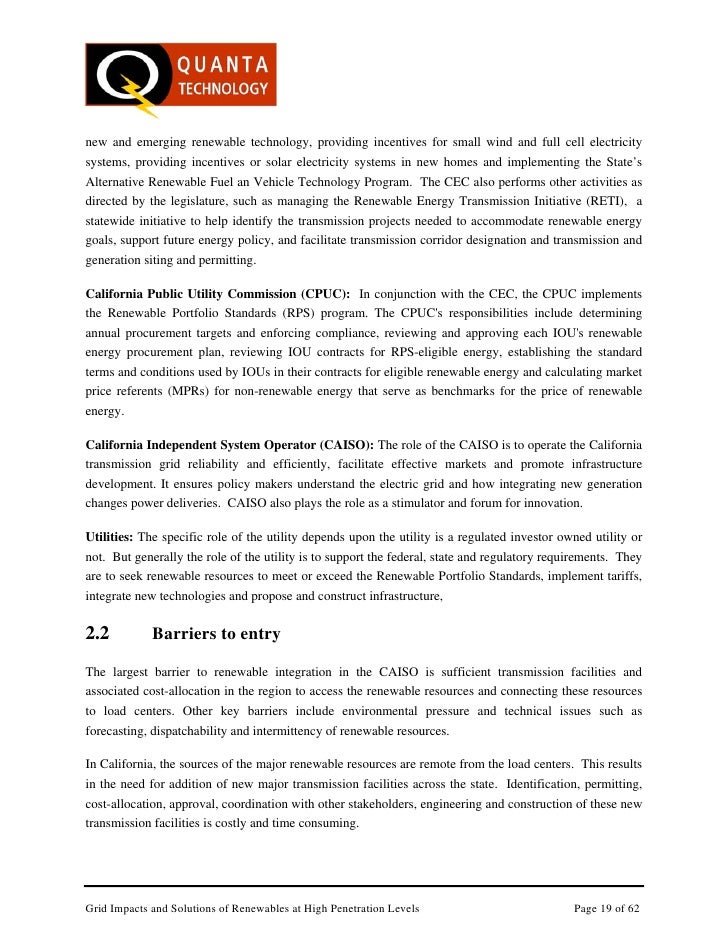 Beyond 33% Renewables: Grid Integration Policy for a Low-Carbon Future A CPUC Staff White Paper 11/25/2015 . predicts that increasing renewable penetration may lead to frequent over-generation renewables necessary to reach 50% renewables, ... Access Doc